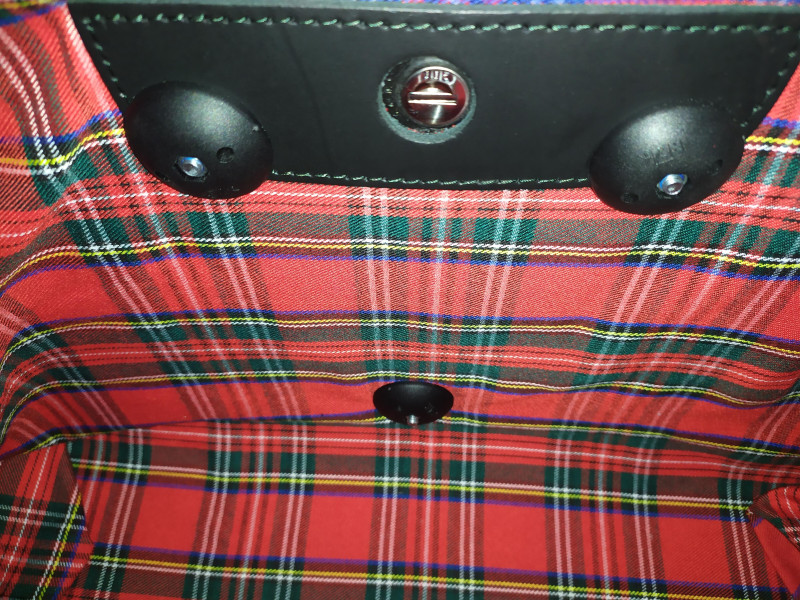 The interior of the bag has a high-quality Scottish Tartan fabric covering, which is both aesthetic and durable. This premium material protects your belongings while providing a vintage and elegant touch.