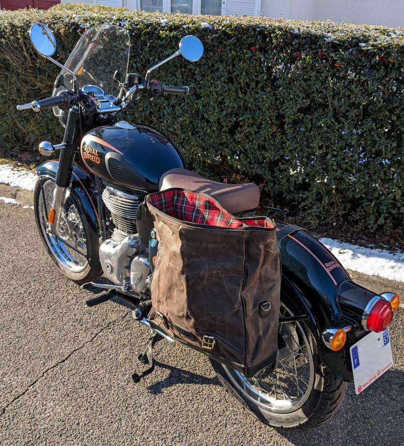 Discover our range of Vintage bags in waxed cotton (16oz - 560gsm) and genuine leather, designed to combine robustness, elegance and practicality. Adapted to the needs of motorcyclists, they offer large storage capacity and a timeless design.