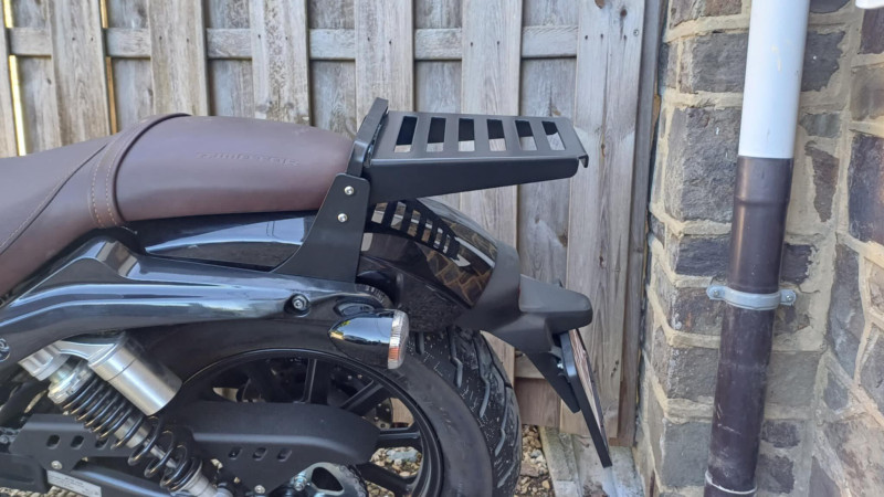 The installation is done in a simple and fast way on existing fixing points thanks to the assembly kit provided. It has no drilling or modification on the motorcycle. Thanks to its modular system, it is enough to detest four screws to quickly assemble and dismantle the components of the kit according to the preference of the pilot. It is possible to complete this luggage carrier with a low, standard or chopper arch to form a full sissy bar