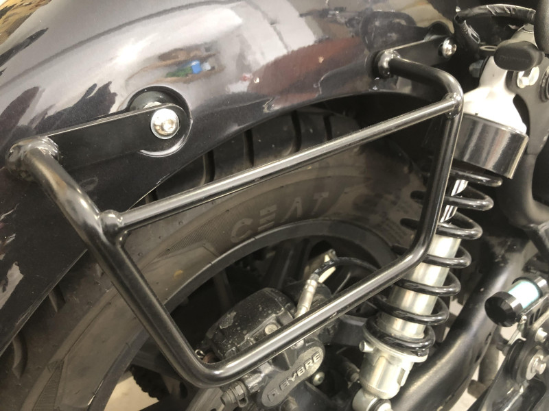 The klick fix saddlebag supports are also compatible with the original Royal Enfield sissy bar
