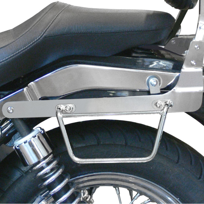 Opt for practicality and safety with this pair of Klick Fix saddlebag supports, designed for quick installation and optimal support for your saddlebags. Made from sturdy steel, these brackets are available in chrome finish or black epoxy paint to perfectly match the style of your motorcycle.