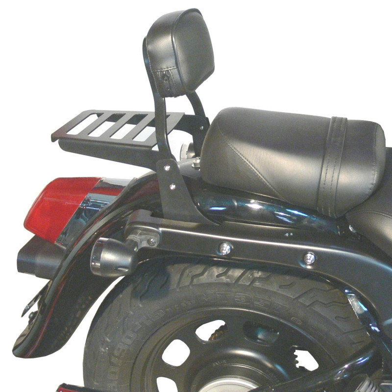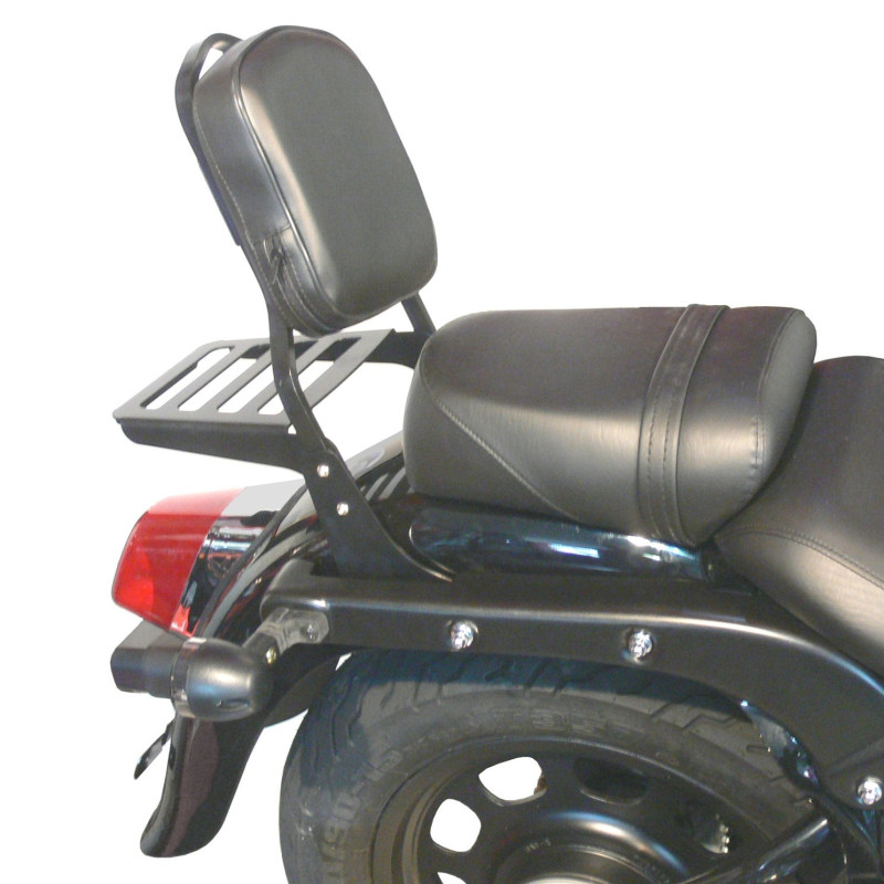 Transform your motorcycle by combining comfort and practicality with this robust and elegant sissy bar. Its solid steel structure guarantees great strength, while its padded backrest offers optimal support to the passenger. Covered with a sky cover (imitation leather), it combines aesthetics and durability, while resisting bad weather and humidity.