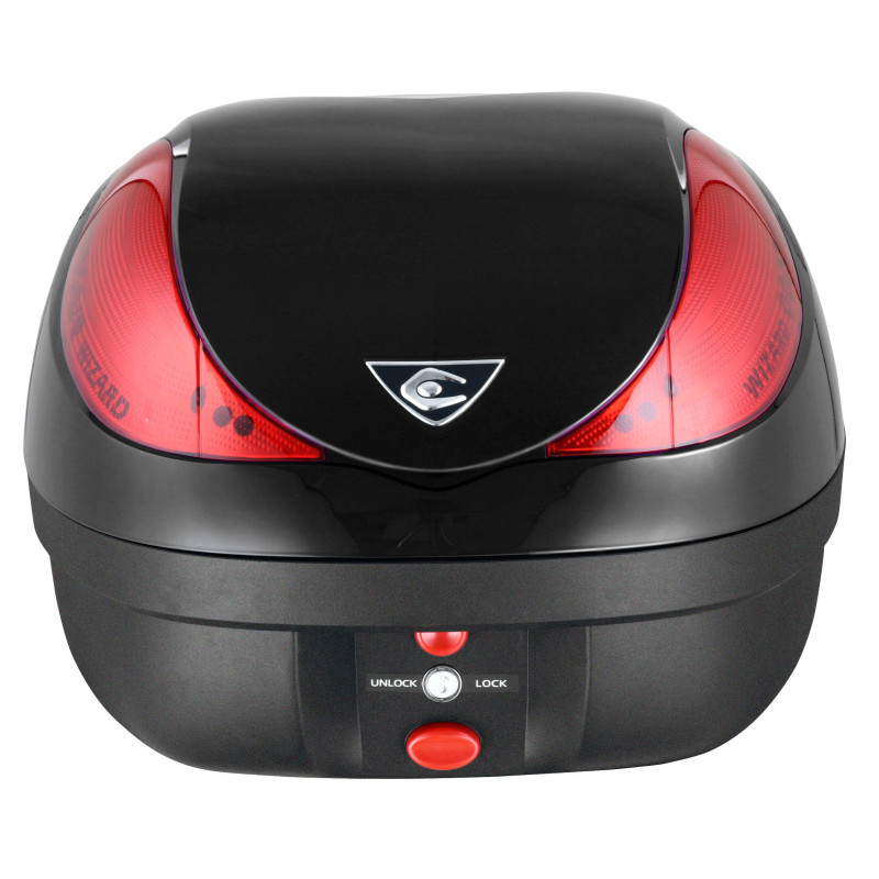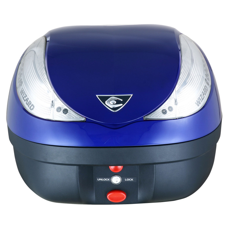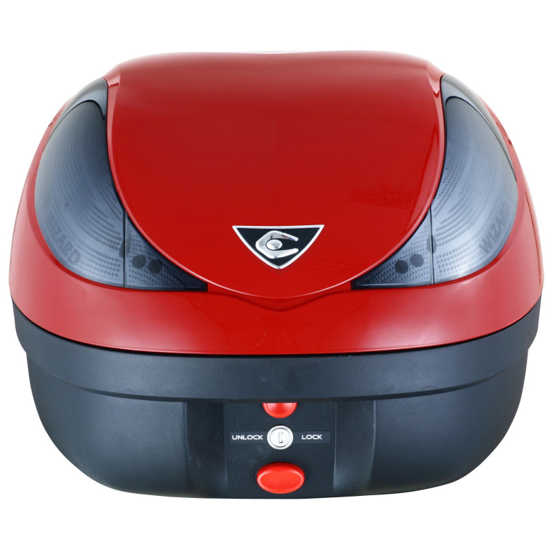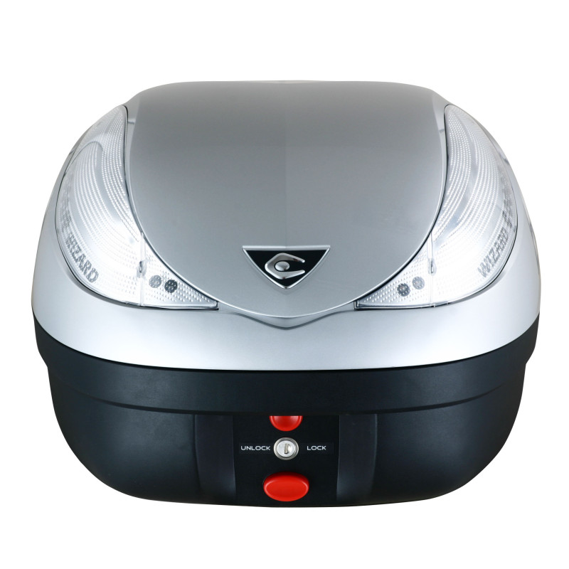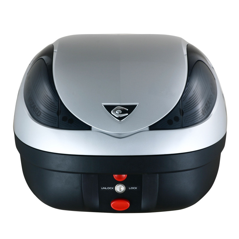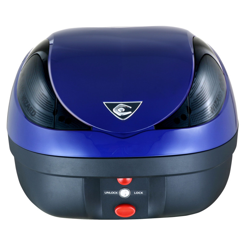 In addition to lock (set of keys provided), the Deluxe range has the new ILOC system, with which you can, thanks to its electronic remote control of 50m, lock or unlock your topcase. Then if you wish, you can open it at a single press on a button.